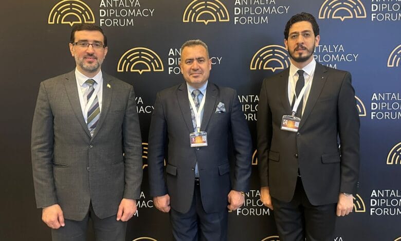 بعد تلقيها دعوة رسمية، شاركت المجموعة العراقية للشؤون الخارجية (IGFA)، في منتدى أنطاليا الدبلوماسي الثالث، والذي عقد تحت شعار (تعزيز الدبلوماسية في أوقات الأزمات)، للمدة 1-3/ مارس/ 2024، برعاية رئيس الجمهورية التركية السيد رجب طيب أردوغان، بحضور 19 رئيس دولة وحكومة و73 وزيراً، و4500 مشارك يمثلون 147 دولة، لمناقشة العديد من القضايا الإقليمية والدولية الملحة، أبرزها: العدوان على غزة، الحرب الروسية الاوكرانية، التغير المناخي، مكافحة الإرهاب، امن الغذاء والطاقة، والتنمية المستدامة.